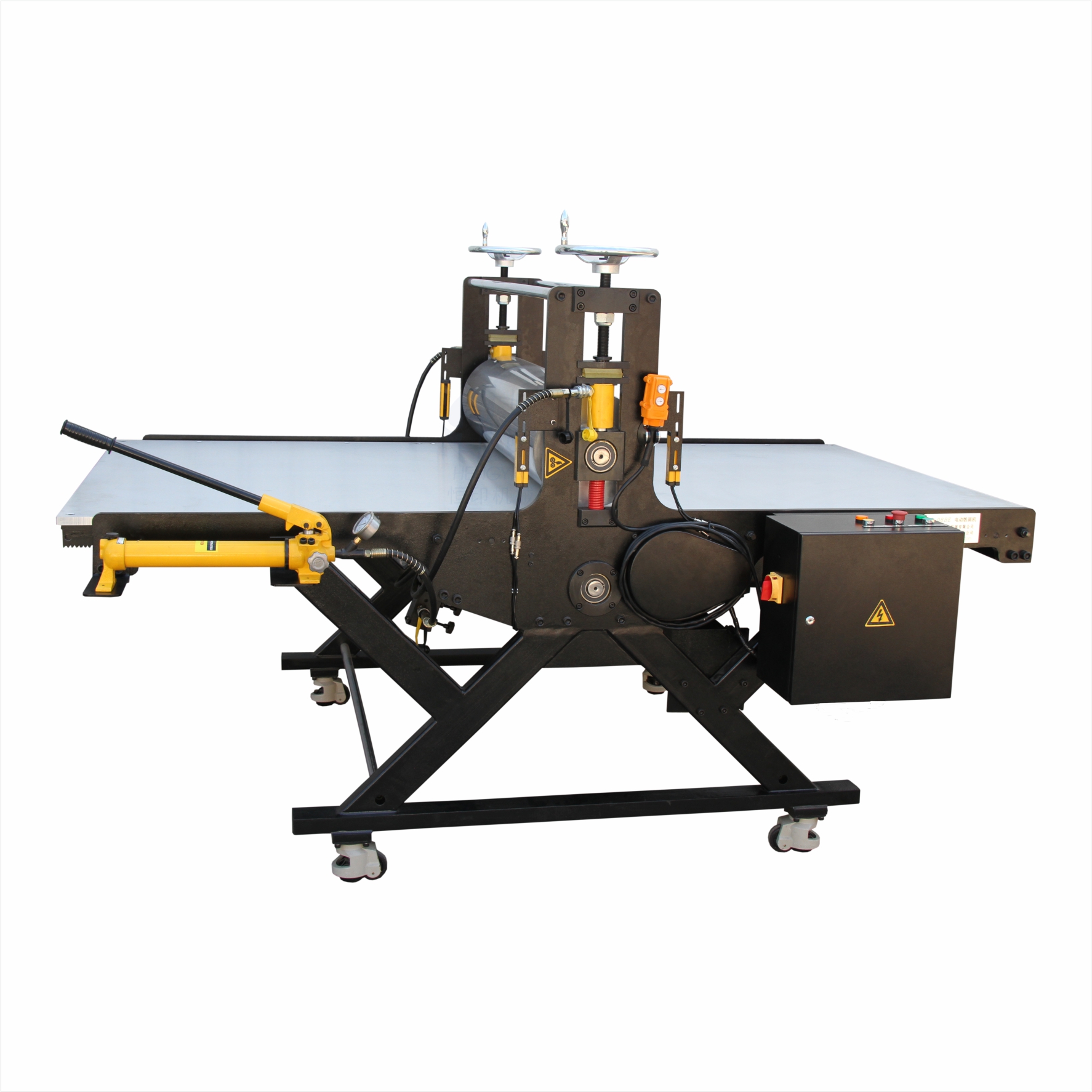 | YJ-08系列液壓型大幅面版畫機(jī)為結(jié)合現(xiàn)代制造技術(shù),使用CNC設(shè)備加工的大尺寸專業(yè)型版畫機(jī),用于高品質(zhì)銅版、木版等版畫印制,也可以做平印。 ● 采用精磨大直徑動(dòng)平衡加工的高精度滾筒,精密齒輪齒條傳動(dòng)。 ● 主體墻板為一體化整體鋼板結(jié)構(gòu),表面為靜電噴涂。 ● 版床為高強(qiáng)度鋁合金材質(zhì)。 ● 液壓泵同步施壓,壓力均勻,可數(shù)據(jù)化調(diào)整。 ● 使用高承載腳輪,可以調(diào)平衡,鎖緊固定,方便移動(dòng)。 兩種施壓形式: 1) 使用手動(dòng)液壓泵,兩端同步最大可達(dá)十噸的液壓缸平衡施壓并顯示壓力; 2) 不使用液壓系統(tǒng)或液壓系統(tǒng)故障狀態(tài)下使用手輪施加壓力。 |
